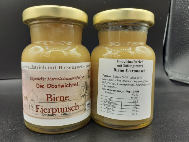 Ein toller fein cremiger und lieblicher Birnenaufstrich mit einem Hauch von Eierpunsch Aroma.