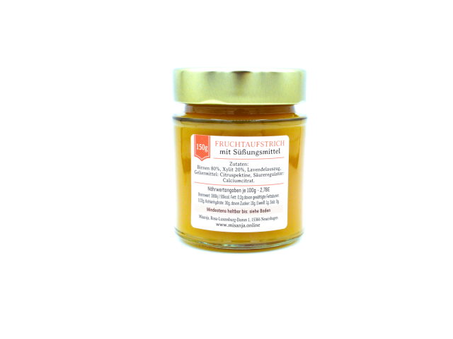 Birnen 80% - Lavendelauszug, Geliermittel: Citruspektine, Säureregulator: Calciumcitrat